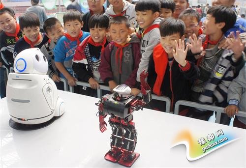 10月21日,河南省沁阳市护城小学的孩子们在与机器人的交流中,感受着科技的神奇。当天,中国流动科技馆来到沁阳市,以“体验科学”为主题,设置了声光体验、电磁探秘、运动旋律、数学魅力、健康生活、安全生活、数字生活7个主题展区。 李亚锋 耿庆林摄影报道