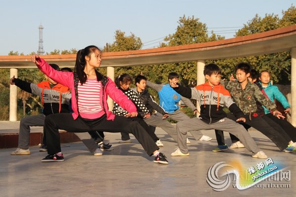 在县政府附近的太极园广场,我们见到了更多练太极的人。有一个年轻姑娘正领着一群孩子在早晨的阳光下打太极,一招一式毫不含糊。