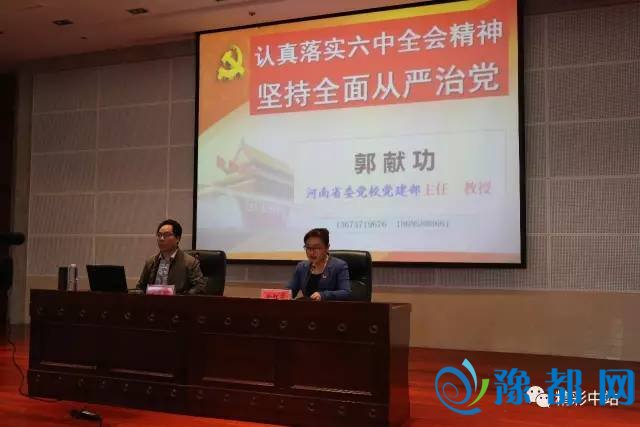 郭献功教授围绕学习贯彻党的十八届六中全会精神的重大意义、推动全面从严治党的重点内容,加强和规范党内政治生活,全面加强党内监督,严格落实全面从严治党责任,发挥领导干部示范带头作用等方面,进行了深刻而又生动的系统讲解和阐释。